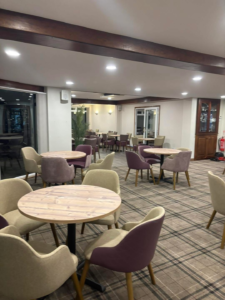 We worked closely with our client to supply new furniture as part of their clubhouse refurbishment. They selected the Alto Side Chair, Opal Armchair and Onyx Armchair with a mix of thistle tartan and plain fabrics from Balmoral Textiles, ILIV, and Agua fabrics, partnered with pine effect laminate tables.