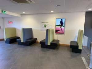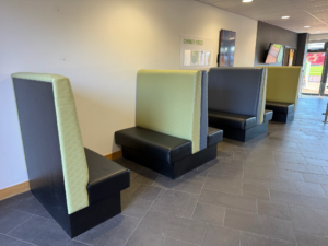 Furniture North East were pleased to supply and install new tall booths for the leisure centres reception area, featuring diamond embossed fabric from Agua on the back with a faux leather seat.