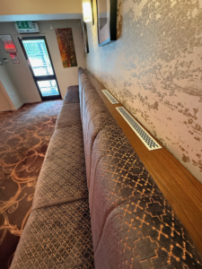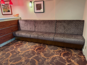 We returned to Lal Quila after many years for a refresh of their fixed seating. They select gorgeous La Feria momo Fabric from Skopos in a stitched flute back style. What a change it makes.